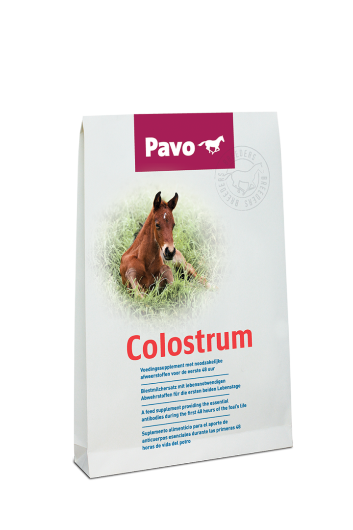 Pavo Colostrum dient als vervanger van biest of colostrum. De eerste melk van de merrie wordt ook wel biest of colostrum genoemd. Deze melk bevat een hoog gehalte aan afweerstoffen die het veulen gedurende de eerste maanden beschermt tegen infecties. Het kan gebeuren dat de merrie tijdens of direct na de bevalling overlijdt, probeer dan nog zoveel mogelijk biest uit de uier te melken en deze met behulp van een zuigfles aan het veulen te geven.