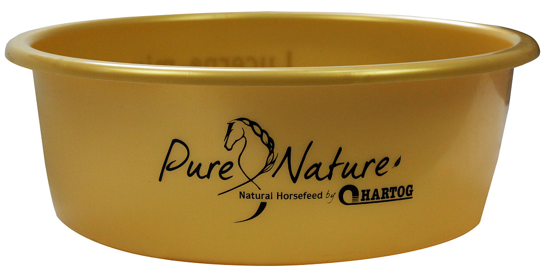 Deze Hartog Feeding bowl in goud-gele kleur is speciaal ontwikkeld om de Lucerne-mix Digest in af te wegen.