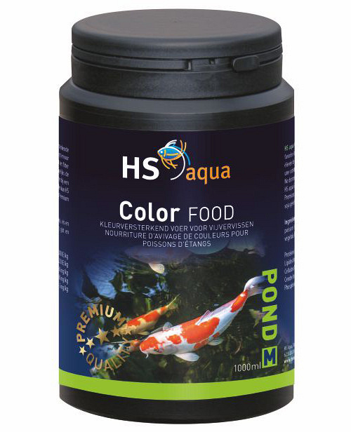 HS Aqua Pond Food Color bevat een extra hoog gehalte aan natuurlijke kleurversterkende ingrediënten voor koivissen. Astaxanthine bevordert de rode kleuren en vitamine C zorgt dat de witte kleur mooi wit blijft. De hoge verteerbaarheid zorgt ervoor dat het filter minder belast wordt en het water niet vertroebelt. Het voer bevat geen genetisch gemanipuleerde soja. Voer 2 – 3 keer per dag de geschikte hoeveelheid en alleen bij een watertemperatuur vanaf 10 °C.