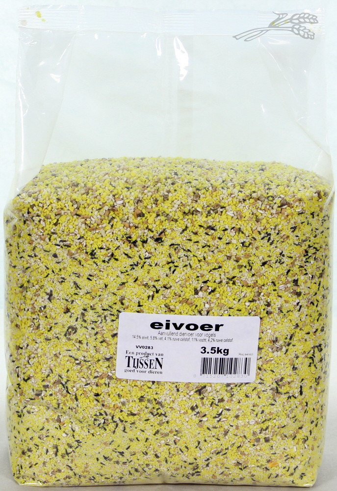 Eivoer Tijssen Droog is een krachtvoer en kan het hele jaar door gevoerd worden. Tijdens de kweekperiode of de rui is dit extra belangrijk, omdat dit ware aanslagen zijn op de energiereserves van een vogel. Met eivoer kan het tekort aan eiwitten in het zadenmengsel aangevuld worden.
