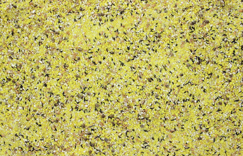 Samenstelling: Vogelpaneermeel, tarwe, nigerzaad, hennepzaad, appel aroma.