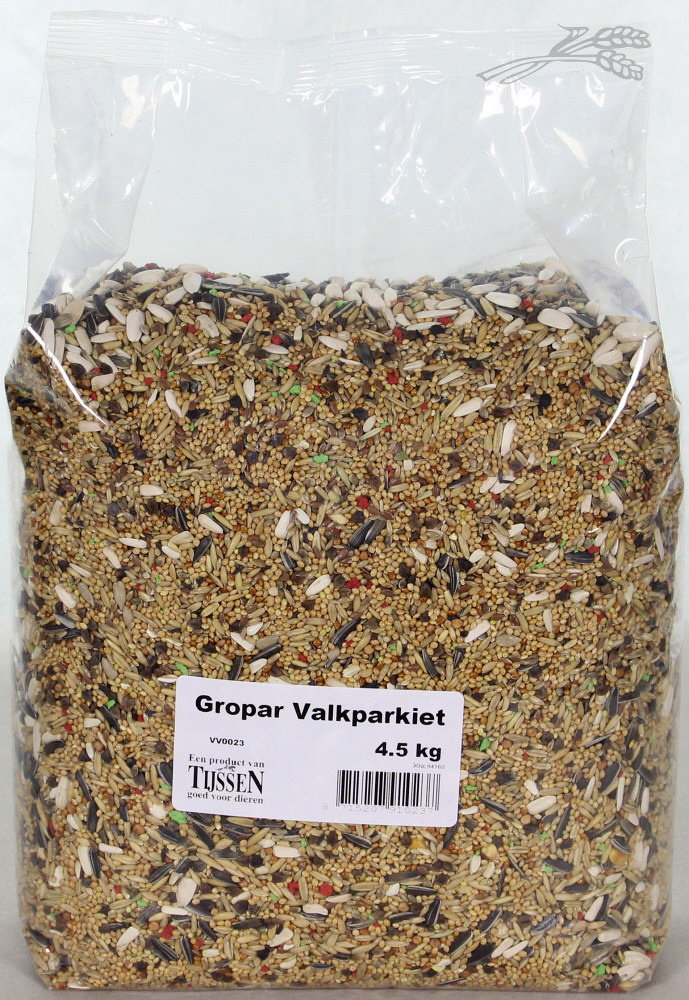 Grote Parkiet - Valkparkiet is een zadenmengeling voor grote parkieten. De mengeling is een volledige voeding.