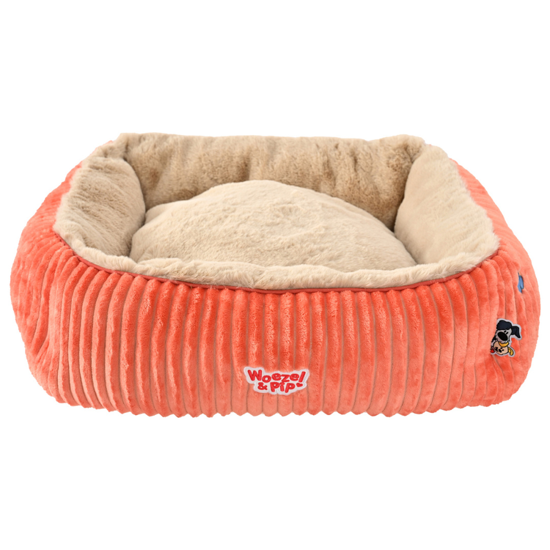 Deze vierkante Woezel & Pip hondenmand combineert comfort en stijl in een warme, eigentijdse vormgeving. Uitgevoerd in een stevige maar zachte corduroy stof in vrolijke kleuren, is deze divan niet alleen een rustplek voor je huisdier, maar ook een kleurrijke blikvanger in huis. De binnenzijde is gevoerd met een zachte pluchen voering die zorgt voor warmte en geborgenheid. De stevige opstaande randen bieden extra ondersteuning, waardoor jouw kat of kleine hond zich veilig en comfortabel kan opkrullen. De herkenbare Woezel & Pip details en geborduurde figuurtjes aan de zijkant maakt deze mand een perfect onderdeel van de officiële Woezel & Pip huisdierenlijn. De mand is uitgerust met een tweezijdig kussen, zodat je gemakkelijk kunt afwisselen tussen verschillende stoffen en stijlen. Een heerlijk zachte divan met karakter, waar jouw huisdier zich elke dag opnieuw in thuis zal voelen.