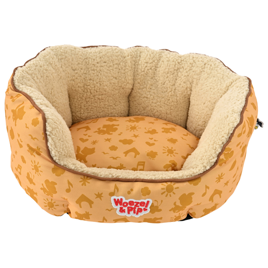 Geef jouw huisdier een heerlijk eigen plekje met dit zachte mandje uit de Woezel & Pip collectie. Met speelse Woezel & Pip silhouetten, zijn deze mandjes niet alleen comfortabel, maar ook een stijlvolle toevoeging aan elk interieur. De binnenzijde is bekleed met een superzachte pluchen stof die warmte en geborgenheid biedt. Ieder mandje bevat een omkeerbaar kussen, waarmee je gemakkelijk kunt variëren in uitstraling of aanpassen aan het seizoen, één kant heerlijk fluffy, de andere voorzien van de vrolijke Woezel & Pip print. Of het nu voor een middagdutje of een nachtje doorslapen is, dit slaapmandje is het perfecte plekje voor jouw huisdier.